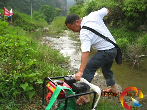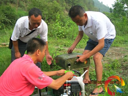 曾慶磊和群眾為抽水機加油
