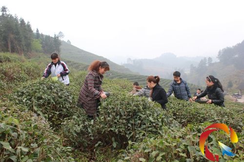 目前,岑鞏縣綠茶種植面積3600畝。2015年預(yù)計達到5萬畝,形成天馬苗落、白巖坪、天星茅坪、龍?zhí)锢销棊r4個茶葉產(chǎn)業(yè)帶。圖為3月15日,茶農(nóng)在岑鞏縣老鷹巖農(nóng)場采摘春茶。 (楊政權(quán))