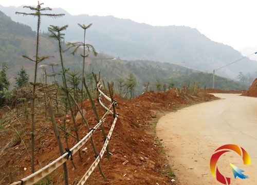 宰轉村村民在宰轉至高華通村水泥路旁植樹