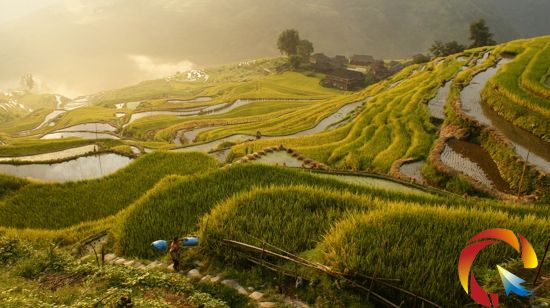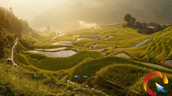 村寨、稻谷、農(nóng)民和諧景象