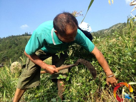 村民正忙著收割仙草