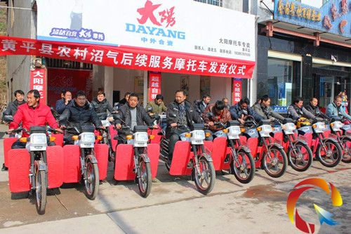 1月14日,黃平縣舉行農(nóng)村沼氣后續(xù)服務(wù)摩托車發(fā)放儀式,現(xiàn)場為20個農(nóng)村后續(xù)沼氣服務(wù)網(wǎng)點(diǎn)配發(fā)了20輛150型大陽摩托車,以解決各服務(wù)網(wǎng)點(diǎn)技術(shù)人員對病、漏沼氣池出診難的問題,提高各沼氣服務(wù)網(wǎng)點(diǎn)的服務(wù)能力,確保農(nóng)村沼氣池的正常使用。(楊林 彭忠)