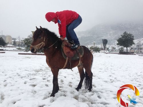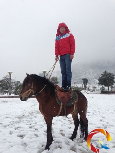 而他腳下的馬匹很“配合工作”,站在雪地上一動不動,提高了“安全系數”。“今年是馬年,我本人也喜歡馬,經常帶它出來溜達,下雪天也是這樣。”這位展示“馬技”的小伙說。