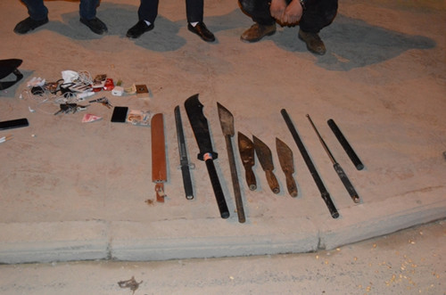 該車后備箱內(nèi)發(fā)現(xiàn)的管制刀具有殺豬刀4把、砍刀3把、鋼棍3根。執(zhí)勤民警立即對(duì)該車和違法嫌疑人王某某進(jìn)行控制,并將所有管制刀具全部收繳,案件當(dāng)晚移交新州派出所處理。