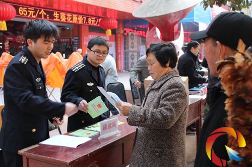 活動現場,設立宣傳咨詢服務臺1個,懸掛宣傳橫幅1條,展出宣傳版面2塊,發放《食品安全知識手冊》、《食品安全法》、《特種設備安全法》、“食用油的質量鑒別方法”、“大米質量的簡易鑒別方法”、“液化氣使用的安全防護”等宣傳資料400余份,同時還對群眾所關心的兒童食品、氣瓶安全、電子稱計量作弊的識別及農資產品真偽等熱點問題進行了熱情詳細的講解。