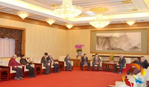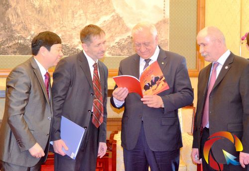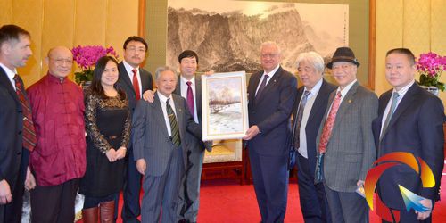 中國產(chǎn)業(yè)經(jīng)濟(jì)信息網(wǎng)財(cái)經(jīng)頻道(記者:許順喜 攝影:劉釔含)報(bào)道:2014年元月21日中午,白俄羅斯共和國總理米亞斯尼科維奇,白俄羅斯共和國駐中華人民共和國特命全權(quán)大使維克多•布里亞一行在北京進(jìn)行國事訪問時(shí),在中國北京釣魚臺國賓館親切接見了著名社會活動家、央視著名主持人畢福劍外事助理、外事秘書劉瀚鍇及著名國學(xué)書畫大師、中央美術(shù)學(xué)院資深教授、中國書畫函授大學(xué)原校長姚治華;中國美術(shù)家協(xié)會理事,著名人物畫家董辰生;全國政協(xié)委員、中國美術(shù)家協(xié)會顧問尼瑪澤仁;中央文史研究館館員、文史館書畫院院長馬振聲;中國致公黨中央文化委員、文化部藝術(shù)品評估委員、國家一級美術(shù)師姚少華;中國美術(shù)家協(xié)會會員、中國工筆畫協(xié)會理事、河北美術(shù)學(xué)院常務(wù)副院長崔景哲;《中國經(jīng)典藝術(shù)》主編助理錢國林;《中國詩書畫印》、《中國經(jīng)典藝術(shù)》總編審聶偉丞;白俄羅斯文化聯(lián)盟副主席巴巴克先生的助理岳曉妮等藝術(shù)家。