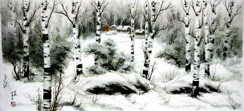 孫洪興對故土的深情使其作品極具感染力。談起他繪畫的白樺林、大興安嶺、冰雪、山水畫等題材時,孫洪興說:“我比較喜歡安靜,對美景非常喜歡,所以選擇的都是比較安靜、溫順的大山大水。我在學校教學的時候,一年四季不斷的在外面寫生,好多的素材都來自于大自然。通過寫生與通過想象畫出來的畫是完全不一樣的,大自然的鬼斧神工是人們難以想象的,所以畫真實的景色是我比較喜歡的。”正如孫洪興所說,他的冰雪油畫飄逸秀雅、虛淡恬靜,給人一種人間仙境之感。這種美是畫家內心世界的真實反映,也是孫洪興對東北故土熱愛一種表達。