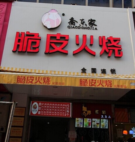 面子工程。對于小吃來說,消費者吃的就是賣相。簡潔明快的店面裝修往往能吸引來不少人流量。除了脆皮火燒的味道,包裝也至關重要。喬東家借鑒了肯德基、麥當勞、甜品蛋糕等等店鋪的產品包裝手法,這些店一般都有精美的包裝盒,而江蘇人民對生活品質的要求促使加盟商們在包裝上進行了革新,裝帶隔離油脂,攜帶更加方便。對于打包帶走的顧客,精美方便的拎袋也成了江蘇店的一大創新。
