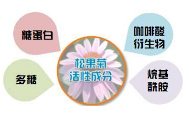 松果菊的多種功效是多種活性成分共同作用的結果。現有研究表明,松果菊中的活性成分主要有多糖、糖蛋白、咖啡酸衍生物、烷基酰胺等。其中咖啡酸衍生物主要為菊苣酸,具有很強的免疫活性。