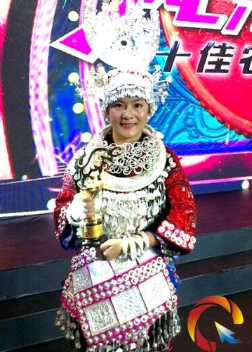 身著苗族盛裝的邰昌麗在頒獎晚會上領獎