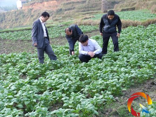 3月28日,彥洞鄉黨委書記胡炳寧率領鄉黨委、鄉人民政府班子部分成員及鄉農業服務中心相關技術人員等一行人來到瑤白村脫毒馬鈴薯大田示范點,開展脫毒馬鈴薯種下后春季生長情況檢查工作。胡炳寧一邊走進田間仔細觀察作物長勢,一邊跟正在田里除草的種植戶進行詳細交談,重點了解脫毒馬鈴薯種下后是否存在爛種和春季發芽、長莖各個階段變化等情況及作物生長還需要解決的各方面問題。在檢查現場,胡炳寧指出,脫毒馬鈴薯種植在彥洞鄉作為重點扶貧產業項目,種植面積廣,投入的人力、物力、財力和精力較大,涉及利益的群眾多,上級領導重視程度高,決不能掉以輕心,馬虎做事,而要扎扎實實一步一個腳印深入開展工作,穩抓穩打。最后,胡炳寧書記還對脫毒馬鈴薯生長期期間的各項護理工作提出四點要求:一是要加強監管督查,定期實施調度,準確掌握信息動態;二是要開展好基礎知識培訓,加強對種植戶搞好作物后期管理技術業務上的指導;三是要抓好雨季期間田地的排水、防洪及夏季作物生長的防蟲、防病等工作,確實保障作物順利生長;四是要出謀劃策,找準渠道,多方面為種植戶產品銷售找好路子,讓種植戶盡心管理好、經營好,保證作物增產曾收。