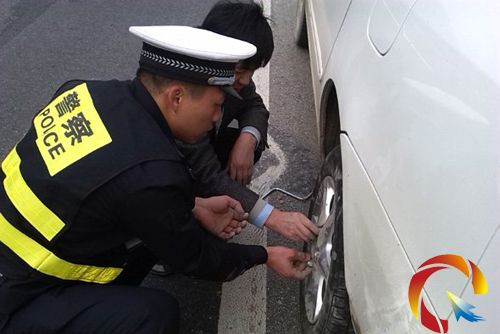 經(jīng)了解,男子姓王,江蘇人,專程從江蘇趕來雷山西江千戶苗寨旅游,原本高高興興趁孩子放寒假帶著全家到黔東南休閑度假,誰料在途經(jīng)滬昆高速公路凱麻路段凱里境內(nèi)時,轎車后輪爆胎,車子動彈不得。雖有備胎有工具,卻不會更換,焦急的王某束手無策,正在打電話向家人救助。了解事情原委后,民警肖坤負(fù)責(zé)做好現(xiàn)場安全防護(hù),并將王某的家人轉(zhuǎn)移到安全地點(diǎn),民警楊林迅速取出小車內(nèi)的工具為駕駛員更換輪胎,通過民警嫻熟的技術(shù),不到二十分鐘輪胎就安裝好了。心急如焚的王某一家,終于露出了笑容。民警熱情、認(rèn)真負(fù)責(zé)的工作態(tài)度讓王某一家感動不已,激動地對民警說:“感謝你們,黔東南高速交警服務(wù)周到、及時,實(shí)現(xiàn)了我們這次旅游的夢想,讓我們體會到貴州人民的熱情,有機(jī)會還會來貴州旅游。”