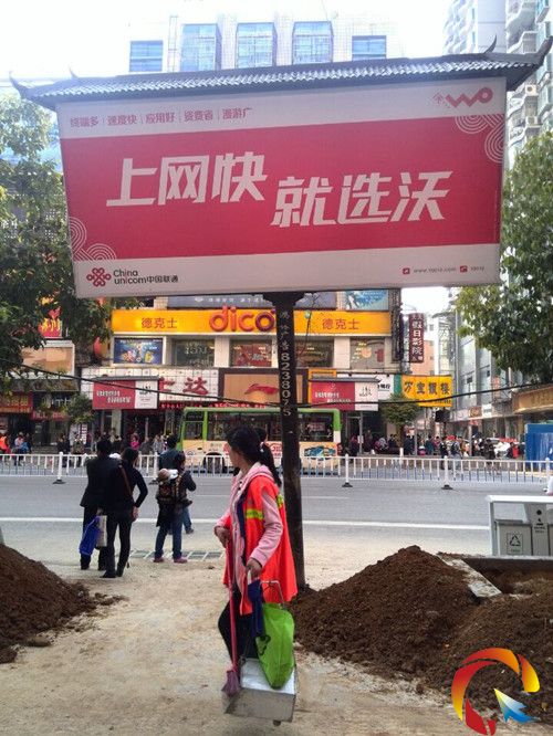 本網(wǎng)訊(記者 周燕玲) 近日,有網(wǎng)友稱凱里市小十字街邊的一廣告位有傾倒現(xiàn)象,并擔(dān)心路人安全。昨日下午3時(shí),記者來到網(wǎng)友所說的廣告位處,發(fā)現(xiàn)該廣告位確實(shí)往后傾斜,從遠(yuǎn)處看像“依靠”著一根拇指大的黑色電線。