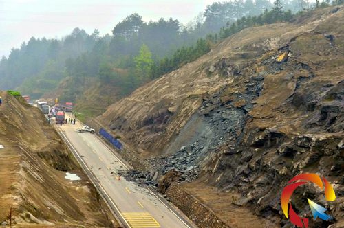 本網訊 3月30日下午16時許,凱里市虎莊至爐山二級公路1.5公里處(王家土)右側護坡發生邊坡塌方,致山體出現裂縫,危及車輛和行人安全。