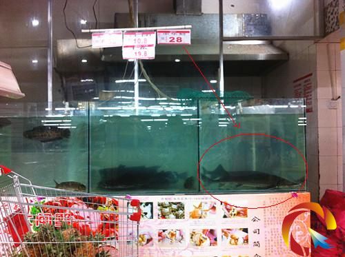 帶著疑問,記者趕到這家超市,在水產品區,發現水箱里果然有兩條中華鱘,售價28元/斤,超市阿姨介紹,本超市的中華鱘是從外地進貨的,屬于池塘圈養的食用型魚種,并不是法律規定內的不能食用的魚種。