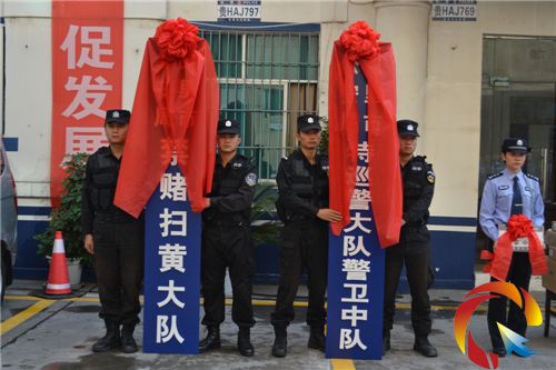 本網(wǎng)訊 (記者 唐云芳)為進(jìn)一步增強(qiáng)凱里市公安機(jī)關(guān)“打、防、管、控”工作能力,發(fā)揮專業(yè)警種職能作用,適應(yīng)新形勢(shì)、新任務(wù)、新要求和新期盼,10月21日,凱里市公安局禁賭掃黃大隊(duì)、特巡警大隊(duì)警衛(wèi)中隊(duì)、法制大隊(duì)案審中隊(duì)掛牌儀式在凱里市公安局舉行。