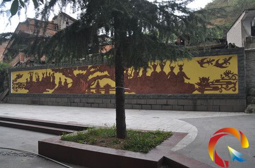 小區(qū)后面建了一面富含民族特色的圍墻,蘆笙、風雨橋、侗族琵琶,描繪著黔東南州苗族、侗族特色的圖。圍墻旁還有兩道休閑走廊,充分體現(xiàn)了小區(qū)人文關懷。