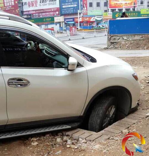 本網訊 (楊懿 萬義南)11月5日上午,凱里大十字郵政門口,一輛私家車不小心栽進邊上施工的坑里,所幸司機并無大礙。