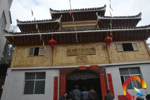 近日,由黎平縣壩寨鄉連洞村村民自行設計并集資修建的綜合戲樓竣工。當地群眾身著節日盛裝,燃放鞭炮,殺豬宰羊祝賀。