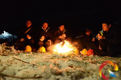 當(dāng)晚21時(shí)40分,完成觀冰及數(shù)據(jù)采集后,工作人員在空曠地?zé)鸹鹑∨O囟贸雒姘云鹆?ldquo;晚餐”,沒(méi)有水,隨手在身后抓起一根“冰棒”有滋有味細(xì)嚼以解決無(wú)水之困。