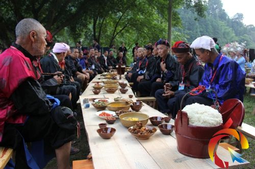 祭薩儀式上,侗族同胞吃長桌宴和踩歌堂