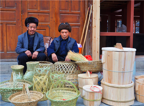 1月16日,暖陽融融。恰逢千戶苗寨西江亥日趕集,春節(jié)前的鄉(xiāng)鎮(zhèn)集市,人流如織。筆者在集市看到,許多七八十歲的老人,將自己手工編織、打制的家用、農(nóng)用、娛玩用的竹器、木器等生產(chǎn)生活用具擺在街邊銷售,真實(shí)的材質(zhì)、扎實(shí)的質(zhì)量,老人的手藝、精致的工藝,吸引了眾多市民、農(nóng)婦、游客的青睞。