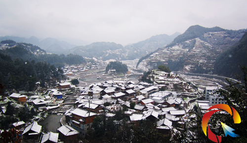 2月18日早晨,雷山縣各苗寨下起了新春馬年的第一場雪,這場雪如同一件苗族節日銀飾盛裝,著在雷山縣各苗寨,使其更顯雷山民族特色。圖為雷山苗寨雪景。(淳侯)