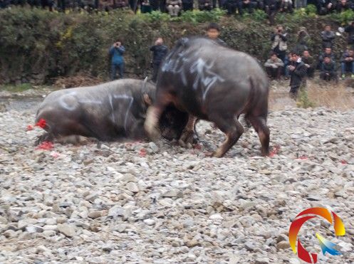3月2日是雷山縣郎德上下寨十三年一輪回馬年“二月招龍節(jié)”。為了讓廣大人民群眾度過一個(gè)歡樂祥和的招龍節(jié)日,展示多姿多彩的民族傳統(tǒng)斗牛文化,增強(qiáng)民族團(tuán)結(jié),振奮民族精神,推動(dòng)旅游業(yè)和地方經(jīng)濟(jì)的發(fā)展。招龍前,雷山縣郎德上寨村民積極自籌資金和在外工作的郎德籍干部職工的大力支持下,于3月6日,在該寨河壩斗牛場(chǎng)舉行了“牛王”爭(zhēng)霸賽。來自云南(4頭牛)、黔東南州的30頭斗牛參加了角逐,近萬人現(xiàn)場(chǎng)觀看比賽。斗牛場(chǎng)上,人聲鼎沸,喝彩陣陣。
