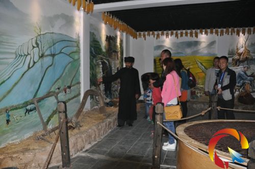 游客及孩子走進(jìn)“村長(zhǎng)小課堂”農(nóng)耕農(nóng)具科普知識(shí)