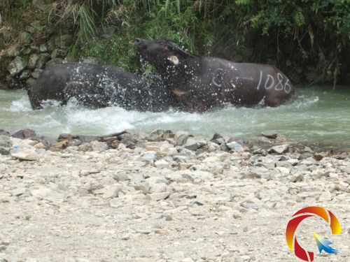 A、B、C三個組別比賽十分精彩,吸引了四面八方觀眾前來觀光。經過兩天的角逐,最后,來自雷山連城村李玉雄的1號牛獲得A組第一名,來自黃里村楊凱平的151號牛獲得B組第一名,來自凱里老鴨余繼仕的17號牛獲得C組第一名,他們分別領走了4018元、5018元和1018元的獎金。圖為水牛爭霸賽的場面。(張希才 攝影報道)