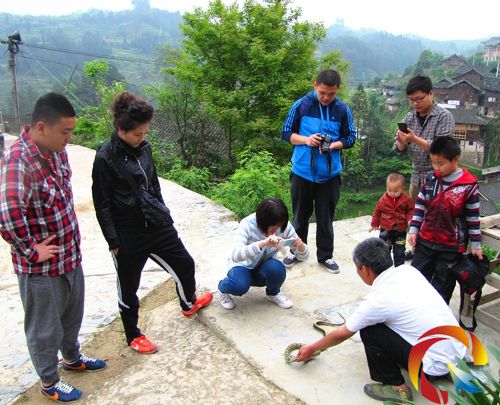 放蛇前,余八千還提蛇給村里的青少年們觀看、觸摸、抓握,讓孩子們從小感受到蛇不可怕,蛇也親人,蛇是人類的好朋友。為教育更多的村民愛護(hù)野生老蛇,使保蛇行動(dòng)更具感染力,當(dāng)天,大學(xué)生余八千在部分鄉(xiāng)親的見證下,在一群孩子們的簇?fù)硐拢诖暹叺纳缴蠈⑸叻艢w山里。