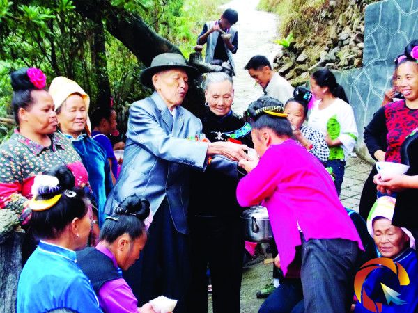 10月4日,兩老舉行婚禮,全村男女老少前來祝賀,男人殺豬、殺雞,婦女煮飯、洗菜,寨上年輕媳婦設攔路酒,盛滿米酒迎客人,場面格外熱鬧。王德發對客人說:“我今年81歲了,想不到今天這么幸福,終于實現了自己盼望已久的愿望,感謝大家。雖然我年歲已高,但身體還健壯,希望我們能長壽百年,共享美好生活。”(吳如雄 張希才 李應光)
