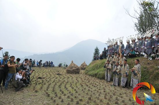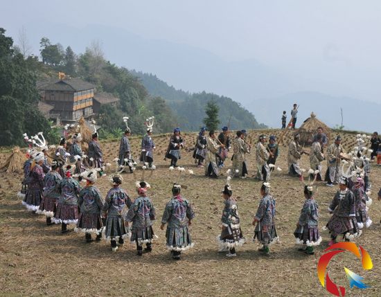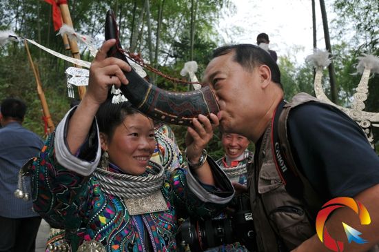 攝影團的到來,純樸善良的也蒙村民穿起了讓人慕名的百鳥衣擺起了牛角欄路酒敬給遠方的客人,隨后他們拉起了古瓢琴吹起蘆笙,跳起了古瓢舞,讓遠道而來的攝影家們不停地按快門。(侯星明/文 李玉貴/圖)