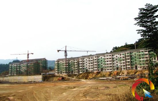 本網(wǎng)訊 今年10月17日是國際消除貧困日,也是我國首個(gè)“扶貧日”。當(dāng)天,筆者來到雷山縣2014年扶貧生態(tài)移民工程丹江鎮(zhèn)紅屯堡移民安置點(diǎn),看到安置小區(qū)生態(tài)移民房正在施工建設(shè)中,隆隆的挖掘機(jī)已撤軍遁跡,絕大部分房屋主體已完成第6層封頂蓋板,6棟房屋正在粉刷外墻,工程進(jìn)展順利推進(jìn)。
