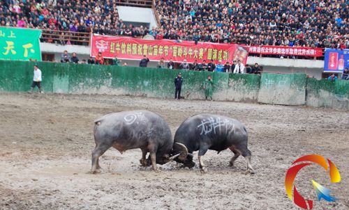本網(wǎng)訊 11月7至8日,歷時(shí)兩天的2014中國·雷山苗年苗嶺斗牛大賽D組比賽在雷山縣民族文體中心舉行,當(dāng)天,有來自云南、貴陽、凱里市及本縣83頭牛王參加D組角逐,3萬余人現(xiàn)場觀看比賽,東道組80號(hào)牛王奪得冠軍,領(lǐng)走了3萬元獎(jiǎng)金