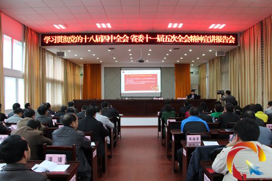 報(bào)告會(huì)上,李裴從黨的十八屆四中全會(huì)《決定》的幾個(gè)亮點(diǎn)、省委十一屆五次全會(huì)基本情況和文稿起草基本過(guò)程、省委常委會(huì)一年來(lái)的工作、省委五次全會(huì)精神的幾個(gè)特點(diǎn)、全省依法治省的重點(diǎn)任務(wù)等5個(gè)方面進(jìn)行了宣講。宣講中,李裴以詳實(shí)的數(shù)據(jù)、生動(dòng)的例子,深入淺出地解讀了黨的十八屆四中全會(huì)和省委十一屆五次全會(huì)精神。李裴講課語(yǔ)言樸實(shí)、生動(dòng)形象,使參加報(bào)告會(huì)的干部職工認(rèn)識(shí)到依法治國(guó)和依法治省的重要意義。