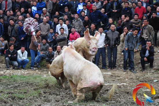 斗牛期間還穿插斗豬賽和斗狗賽,斗豬每天插斗1架次,斗狗每天插斗2-3架次。(李雪)