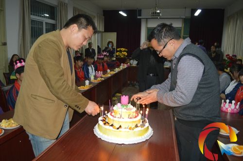 學(xué)校相關(guān)領(lǐng)導(dǎo)親手點(diǎn)燃生日蠟燭