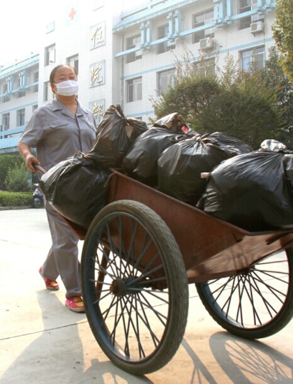楊孟林在運(yùn)垃圾