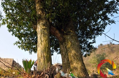 龍友福老人告訴記者,這兩株老古樹是紅綢樹(俗名),至少已有五百年的年樹齡。“在我五、六歲時,經常到樹下玩耍,那時,這兩株老古樹的大小與現在沒有太大的區別。”龍友福說。