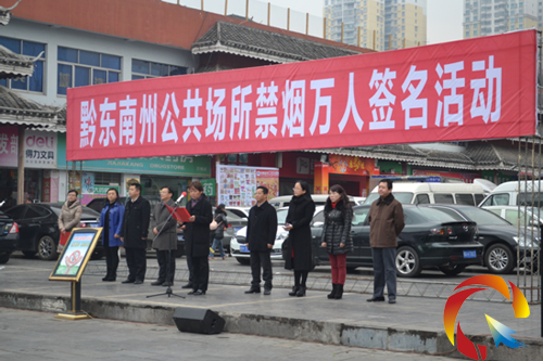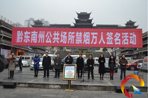 為貫徹落實(shí)中共中央辦公廳、國(guó)務(wù)院辦公廳近日印發(fā)了《關(guān)于領(lǐng)導(dǎo)干部帶頭在公共場(chǎng)所禁煙有關(guān)事項(xiàng)的通知》,共創(chuàng)文明健康社會(huì),加強(qiáng)我州禁煙控?zé)煹墓ぷ鳌S?月7日上午10時(shí),在凱里市萬博廣場(chǎng)舉行“黔東南州公共場(chǎng)所禁煙萬人簽名活動(dòng)”。出席本次簽名活動(dòng)的領(lǐng)導(dǎo)有:州人大常委會(huì)副主任石干昌,州人民政府副州長(zhǎng)、州愛國(guó)衛(wèi)生運(yùn)動(dòng)委員會(huì)主任劉曉春,州政協(xié)副主席楊勝勇以及凱里市、州衛(wèi)生局、州文明辦有關(guān)領(lǐng)導(dǎo)出席活動(dòng)。活動(dòng)由州人民政府副秘書長(zhǎng)王蕾主持。