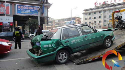 該事故中共有5輛車受到不同程度損壞,其中出租車的車頭和車尾因受到擠壓,損壞最為嚴重。銀灰色汽車的車尾和一輛紅色轎車車頭及車身受到損壞,1路公交車以及一輛電動車也受其影響。