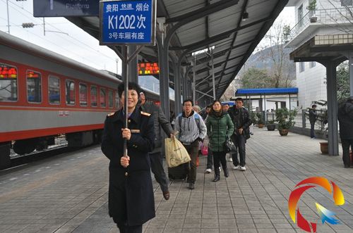 據凱里車務段工作人員介紹,舉牌帶領旅客進站臺,是車站今年春運的一個新舉措,目的就是讓所有旅客能夠找到乘車的正確方向,并有序進站臺上車。