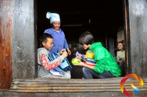 進到邰奕江的屋內,朱丹給他贈送了“快樂學生包”,這是專門為山區學生設計制作的書包,包里有很多的寶貝,飯盒、雨衣、作業本、記事本、小水壺、兒童玩具等等。