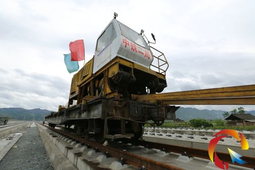 本網訊 5月4日,記者在貴廣高速鐵路榕江段施工現場看到,多名施工工人正在鋪軌。據悉,鋪軌工作將在本月內完工。