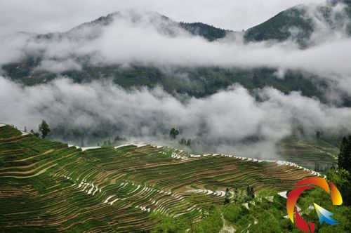 本網(wǎng)訊 進入五月,已是雨水豐盈季節(jié),一場場暴雨使山野綠意盎然生機,位于榕江縣和從江縣交界處的月亮山梯田,雨后云霧繚繞,依山延綿的梯田在霧景的襯托下,如置云端,飄渺動人,如夢似幻。(胡濤 攝影報道)
