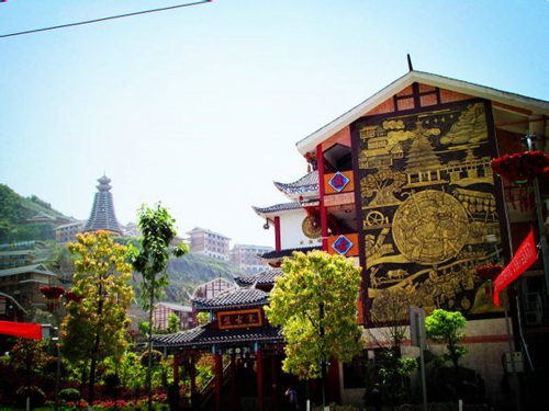 本網(wǎng)訊 (記者 周燕玲) 盤古寨——中式古典裝潢配上苗侗風(fēng)情元素,遠(yuǎn)遠(yuǎn)看去,像是一座不修邊幅的“小寨”,近看,風(fēng)車搖曳著細(xì)細(xì)流水、掛燈在朱紅屋檐上眺望、棲身在長廊上的民族服飾以及花梨木的桌椅,讓人流連忘返。