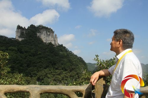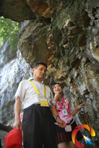 葉辛聆聽導(dǎo)游講解云臺山白云巖喀斯特故事