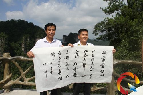他環(huán)視云臺山的巍峨雄姿,回想那漂流“礦泉河”之旅,坐船游舞陽河“高原峽谷”風(fēng)光,參觀苗族“刻道”博物館,雖簡陋,但實屬全國獨一無二的非遺等,不甚感慨,即興賦詩,潑墨揮毫。