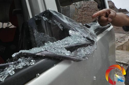 面包車被砸得“遍體鱗傷”